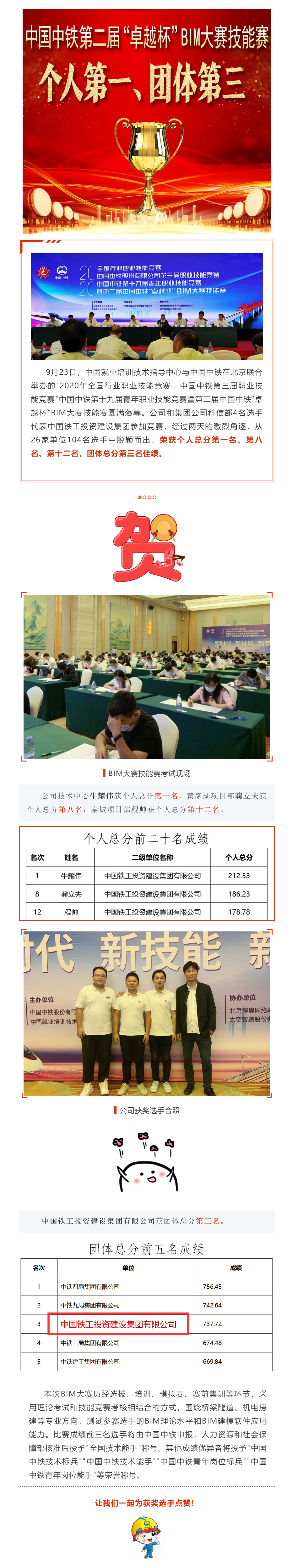 喜報!中國中鐵BIM年度技能賽個人第一、團體第三!