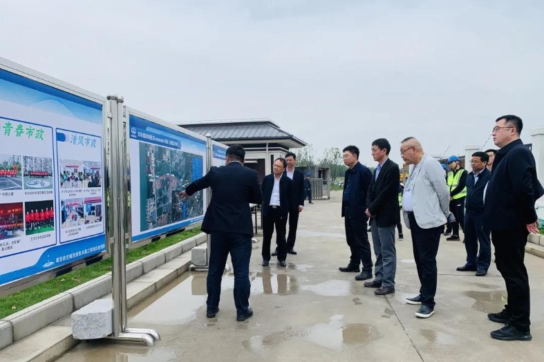 4月21日,為深入了解公司重組改革后水務環保板塊的發展情況,中國鐵工投資集團監事會主席王宗懷,外部專職董事曹艷春、李輝,董事會秘書李凱到南京市主城區應急水源工程進行實地調研,公司黨委書記、執行董事高學武陪同。調研組一行實地查看了項目建設的最大單體工程——應急泵站,聽取了項目負責人對應急水源工程基本概況、施工進展情況、“五大市政”品牌建設工作推進情況的詳細匯報,并對項目目前取得的成效給予充分肯定。